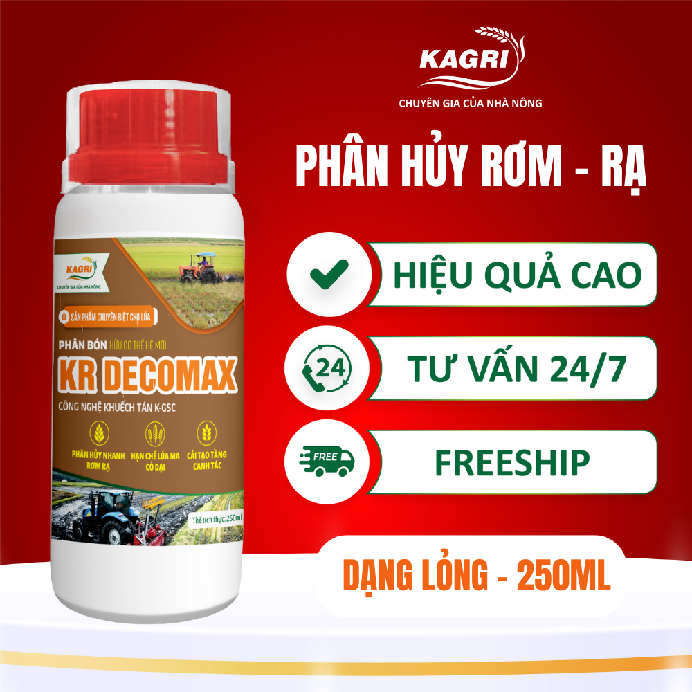 KR DECOMAX – Là phân bón hữu cơ thế hệ mới giúp phân huỷ nhanh rơm rạ, hạn chế lúa ma cỏ dại, cải tạo tầng canh tác để bắt đầu một vụ mùa mới.